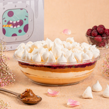Nuestro Tres Leches Bowl de Mora y arequipe es un postre generoso y lleno de contrastes: base de torta tres leches suave y húmeda, acompañada de crema de vainilla, salsa de mora ligeramente ácida, arequipe cremoso y merengues crujientes que aportan el toque perfecto.
